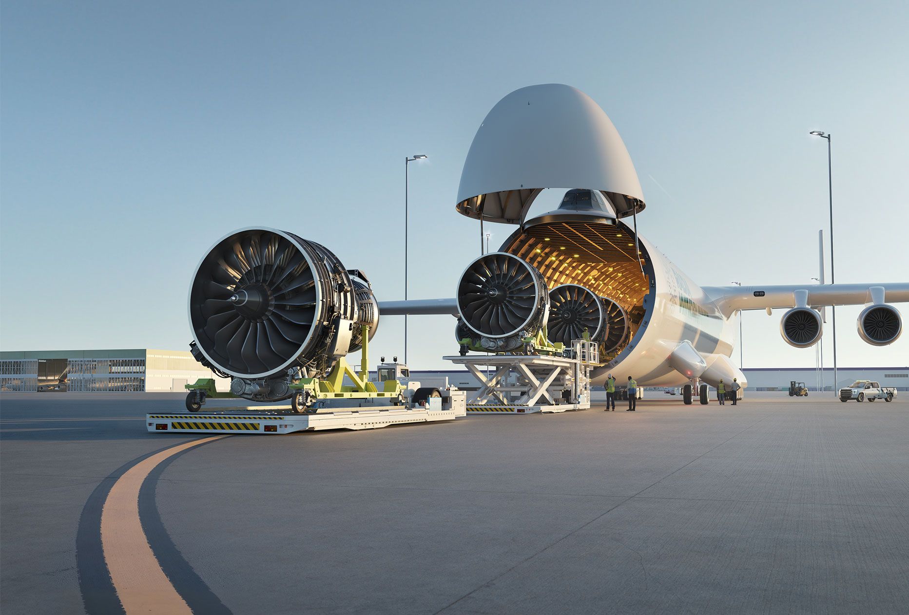 Purpose-built for flexible operations, WindRunner's design reduces the need for specialized ground support equipment. The roll-on/roll-off capabilities optimize cargo handling and flexibility for the most logistically complex or oversized components. These capabilities provide greater efficiency and accessibility to regional airports or unstructured locations.