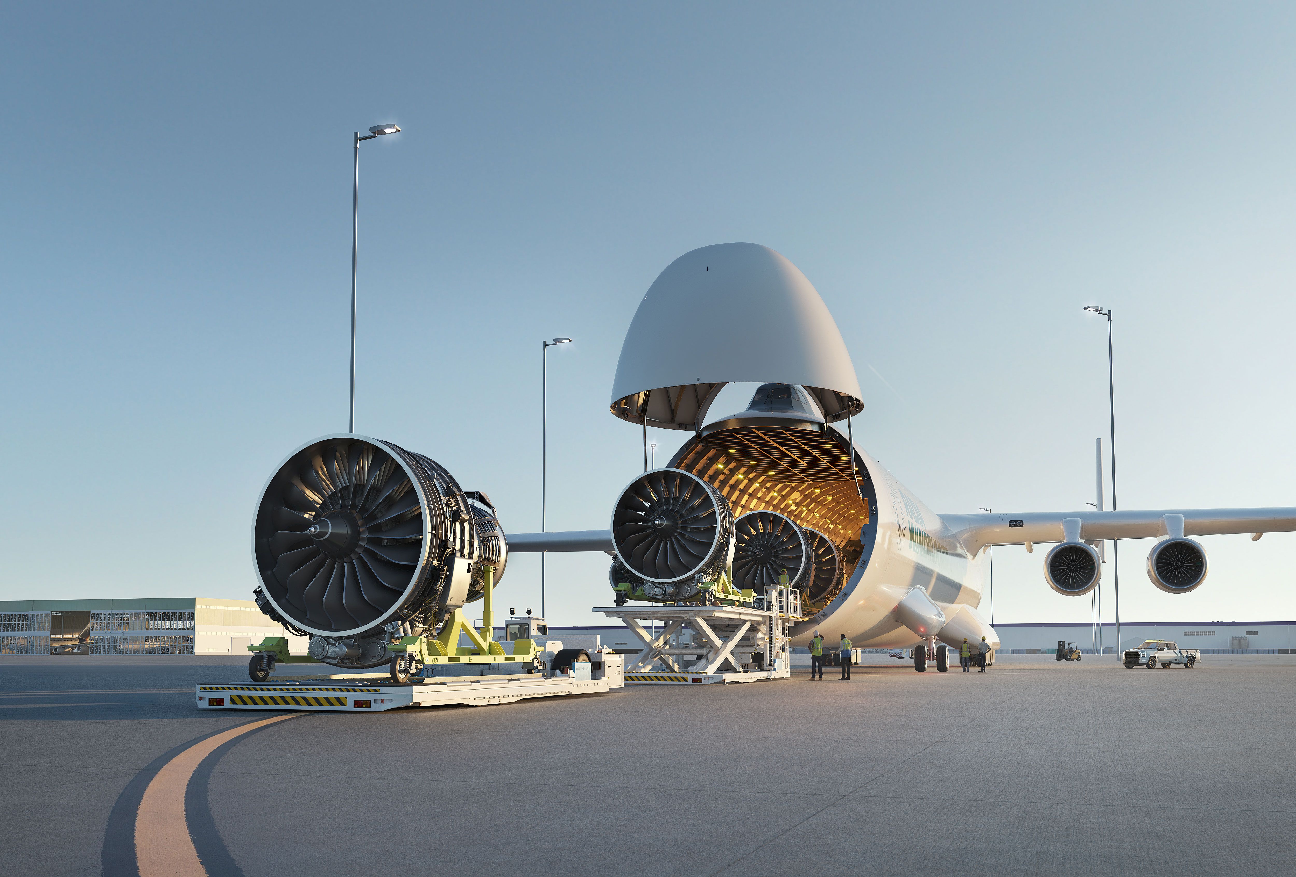 Purpose-built for flexible operations, WindRunner's design reduces the need for specialized ground support equipment. The roll-on/roll-off capabilities optimize cargo handling and flexibility for the most logistically complex or oversized components. These capabilities provide greater efficiency and accessibility to regional airports or unstructured locations.